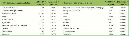 Al interior del índice subyacente, a tasa mensual, los precios de las mercancías subieron 0.93% y los de los servicios 0.47%.