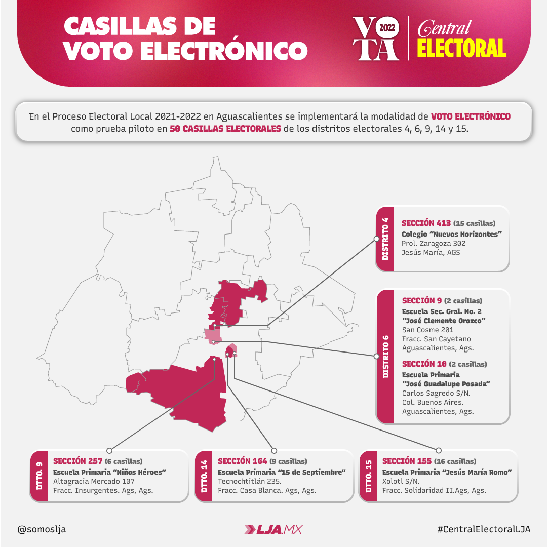 Estas son las ubicaciones de las casillas electrónicas para votar en la elección 2022 de Aguascalientes