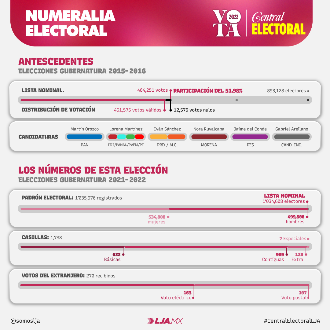 Hoy se celebran las elecciones a la gubernatura de Aguascalientes y como parte de este proceso hay algunas cifras importantes que debes conocer, tanto de este proceso, como una comparativa con la elección semejante anterior, en este caso, las elecciones de 2016.