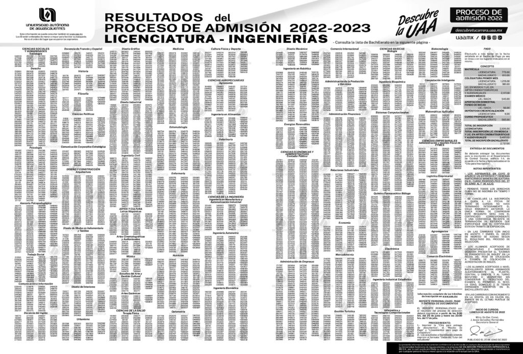¡Aquí estamos para ti! Tenemos los resultados de admisión de Licenciaturas, Ingenierías y Bachillerato de la UAA Universidad Autónoma de Aguascalientes 2022.