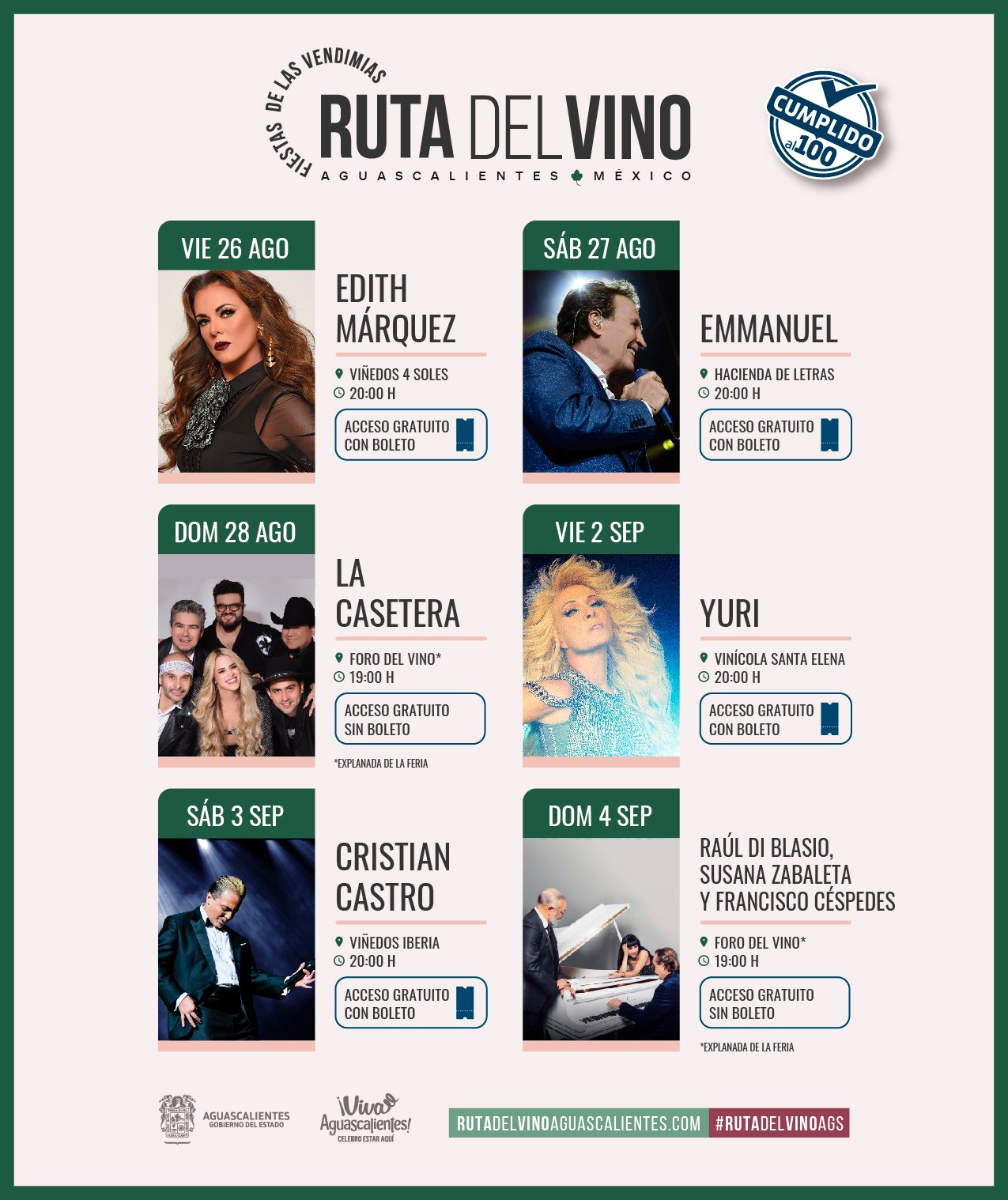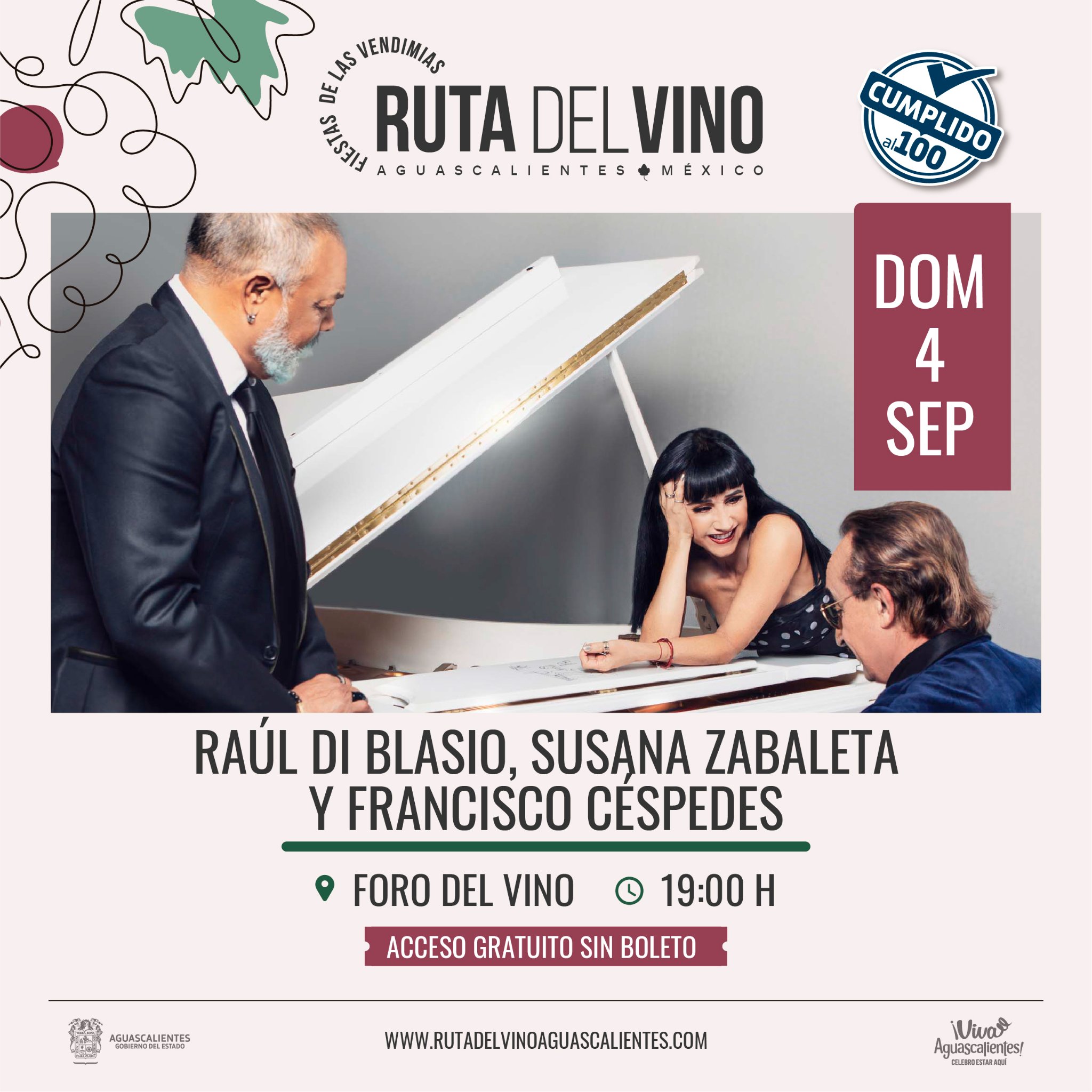 - Entrada gratuita con boleto de cortesía