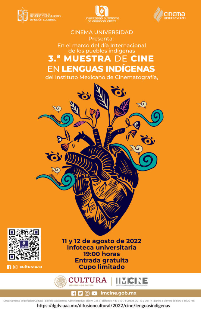 La 3ª Muestra de Cine en Lenguas Indígenas inició en febrero y concluirá en noviembre; en ella se realizarán 95 funciones en 20 sedes presenciales en 12 estados de la República Mexicana, entre ellas Aguascalientes, con la participación de la UAA. Los filmes se proyectarán en la Infoteca universitaria a las 19:00 horas. La entrada es gratuita con cupo limitado.