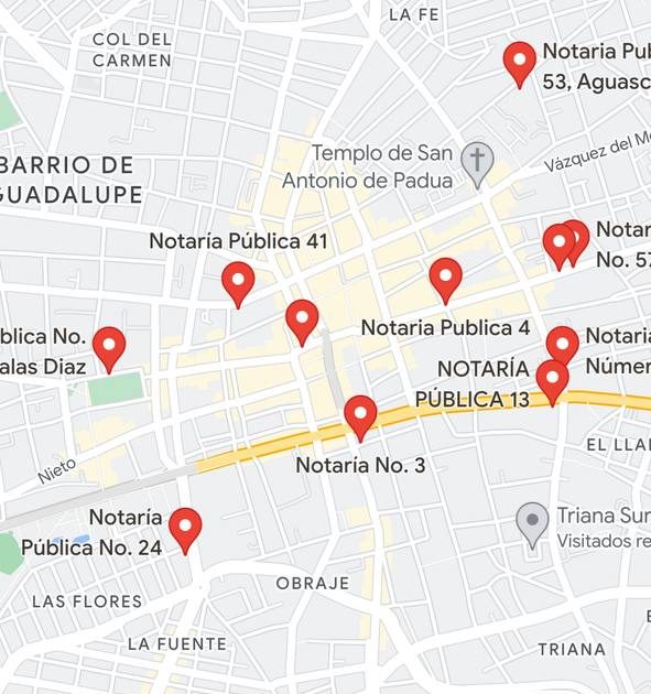 Más allá de las críticas a las personas que han recibido una notaría, llama la atención la ubicación de las mismas. En Aguascalientes se tienen cerca de 70 notarías públicas, la gran mayoría de ellas ubicadas en la ciudad del mismo nombre y capital del estado.