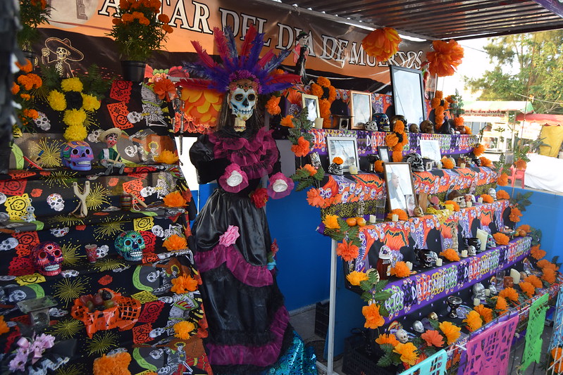 Desde el pasado 17 de octubre, en la calle Arroyo de los Arellano, cientos de comerciantes dieron inicio al ya tradicional Tianguis de Los Muertitos, un espacio donde convergen y contrastan los recuerdos de las personas fallecidas con los colores, los olores, las texturas, y los sabores que giran en torno a los festejos del Día de Muertos. Un laberinto de pasillos que se extiende por un costado del Panteón de la Cruz alberga a familias cuya participación en este tianguis data de más de 50 años ofreciendo artesanías de barro, flores, dulces, disfraces o papel picado.