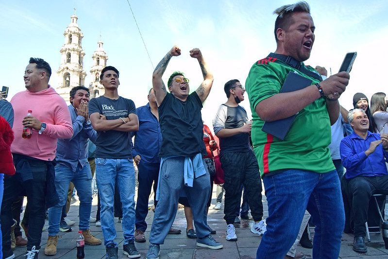 La plaza principal de Aguascalientes se convirtió en una extensión del estadio 974 en la ciudad de Doha en Qatar y los cientos de personas que se dieron cita para ver el partido en la pantalla que instaló el gobierno estatal se transformaron en el jugador 12 apoyando a la selección mexicana en su partido de presentación frente a la escuadra de Polonia.