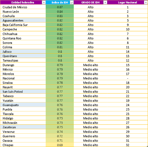 De acuerdo con el ITER del INEGI tenemos la siguiente escolaridad por estados: