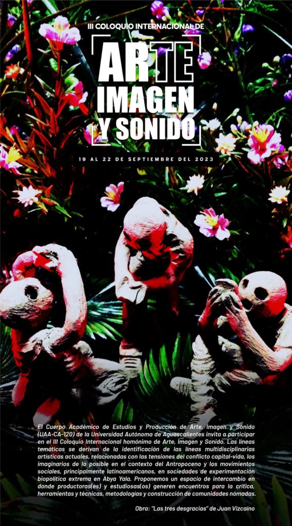 La Universidad Autónoma de Aguascalientes a través del Doctorado Interinstitucional en Arte y Cultura del Centro de las Artes y de la Cultura (CAC), la Maestría en Arte y el Cuerpo Académico en Estudios y Producción de Arte, Imagen y Sonido; convoca a participar en el III Coloquio Internacional de Arte, Imagen y Sonido, un espacio para promover la reflexión y el diálogo en torno a la producción, gestión y estudio de las artes en el contexto actual.