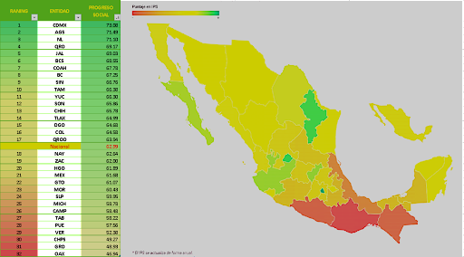 México Cómo Vamos es un observatorio nacional especializado en Progreso Social que utiliza la metodología internacional del Social Progress Imperative. El Índice está basado en un rango de indicadores sociales y ambientales que capturan tres dimensiones del progreso social: Necesidades Humanas Básicas, Fundamentos del Bienestar y Oportunidades, y toma valores entre 0 y 100, donde 0 es el menor progreso social posible y 100 el máximo progreso social posible. El IPS mide la extensión en la que los países satisfacen las necesidades de sus ciudadanos. Se marcan como objetivos imperativos para México: