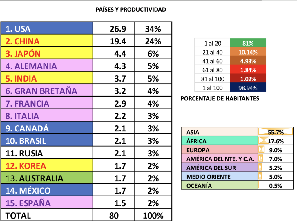 PAÍSES Y PRODUCTIVIDAD