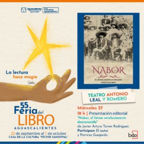 En el Teatro Antonio Leal y Romero se realizará la presentación editorial Nabor, el héroe revolucionario desconocido de Javier Arturo Torres Rodríguez a las 18:00 horas; así como la presentación editorial El viejo de la danza (Pie rojo Ediciones) de Juan Jesús Cervantes Montoya a las 19:00 horas.