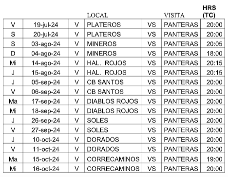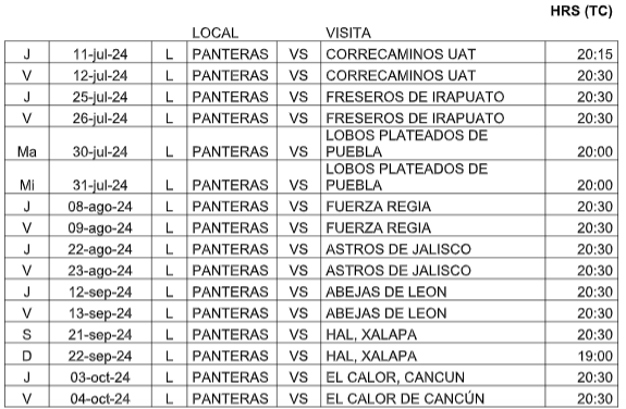 Se anexan el calendario completo de local y visita de Panteras de Aguascalientes.