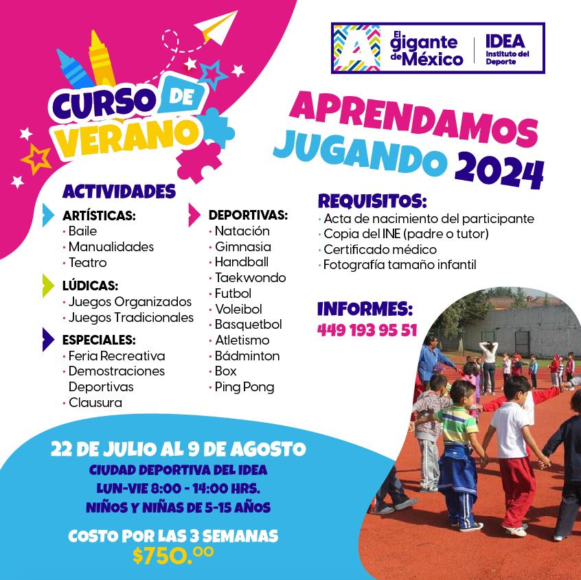 El Gobierno del Estado, a través del Instituto del Deporte del Estado de Aguascalientes, invita a las niñas, niños y adolescentes de 5 a 15 años a participar en el curso de verano “Aprendamos Jugando”, donde las y los asistentes podrán disfrutar de actividades deportivas y recreativas durante su período vacacional.