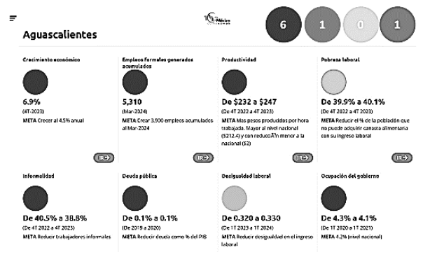Para el semáforo estatal de México Cómo Vamos, Aguascalientes luce color verde en seis de las ocho variables económicas semaforizadas, por uno en preventivo, la desigualdad laboral y otro en color rojo correspondiente a la pobreza laboral, por cierto, superior a la media nacional y del doble del objetivo propuesto del 20%.