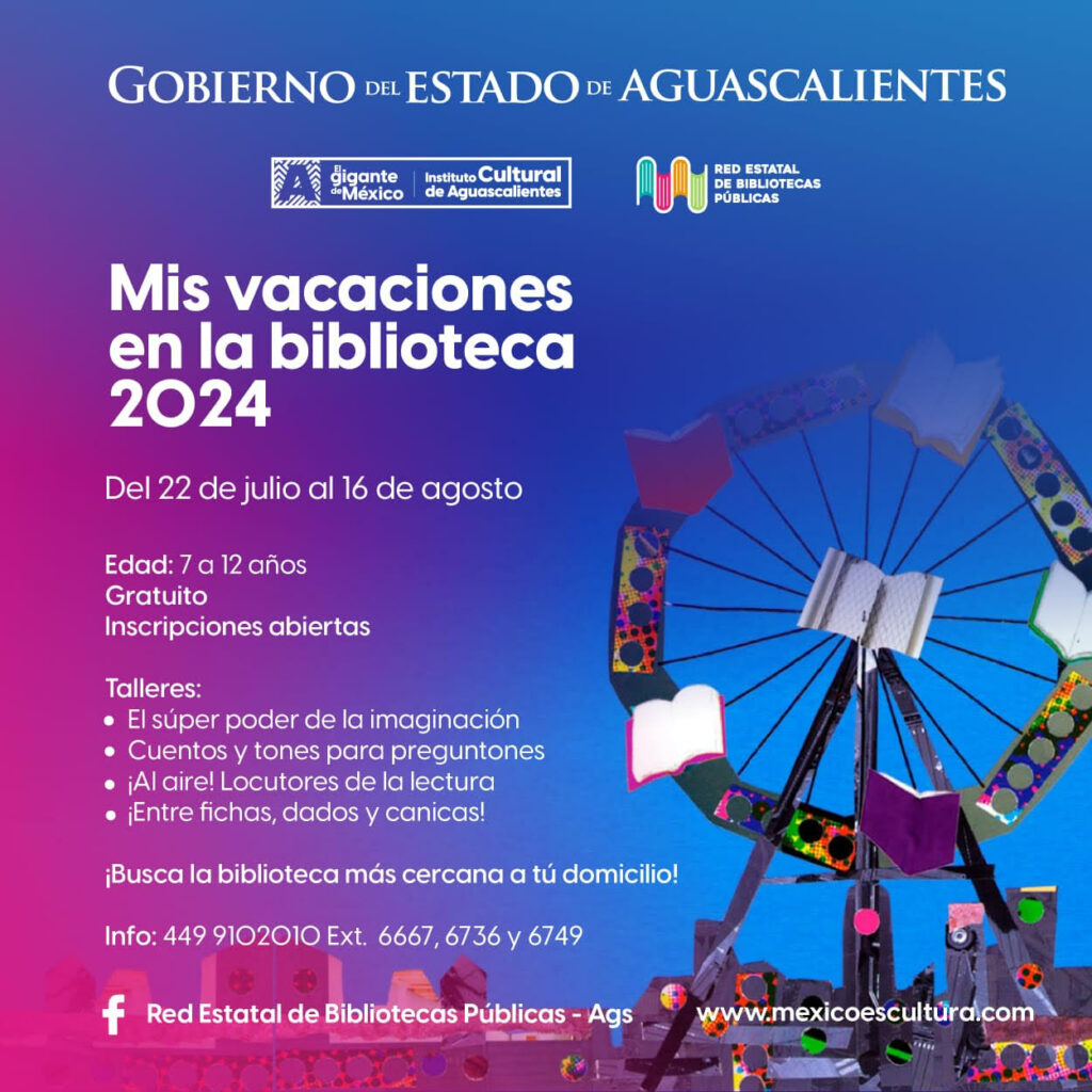 Busca la biblioteca más cercana a tu domicilio y disfruta de los talleres El súper poder de la imaginación; Cuentos y tones para preguntones; ¡Al aire! Locutores de la lectura, y ¡Entre fichas, dados y canicas! Un conjunto de experiencia, lenguaje y juego para que, como en una feria de lectura, la emoción se viva este verano en las bibliotecas públicas de Aguascalientes.