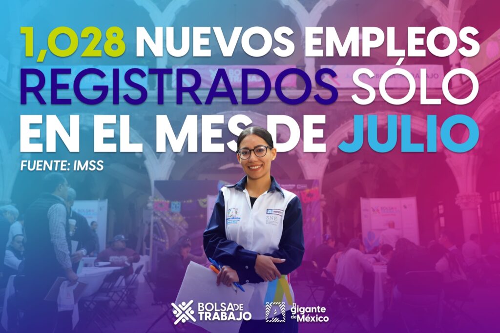 Al conocer el último reporte del Instituto Mexicano del Seguro Social (IMSS), respecto al registro de empleo formal, la gobernadora destacó que en Aguascalientes se crearon 1,028 nuevos puestos de trabajo durante julio pasado, con lo que el estado registra seis meses con variaciones positivas en los primeros siete meses del 2024.