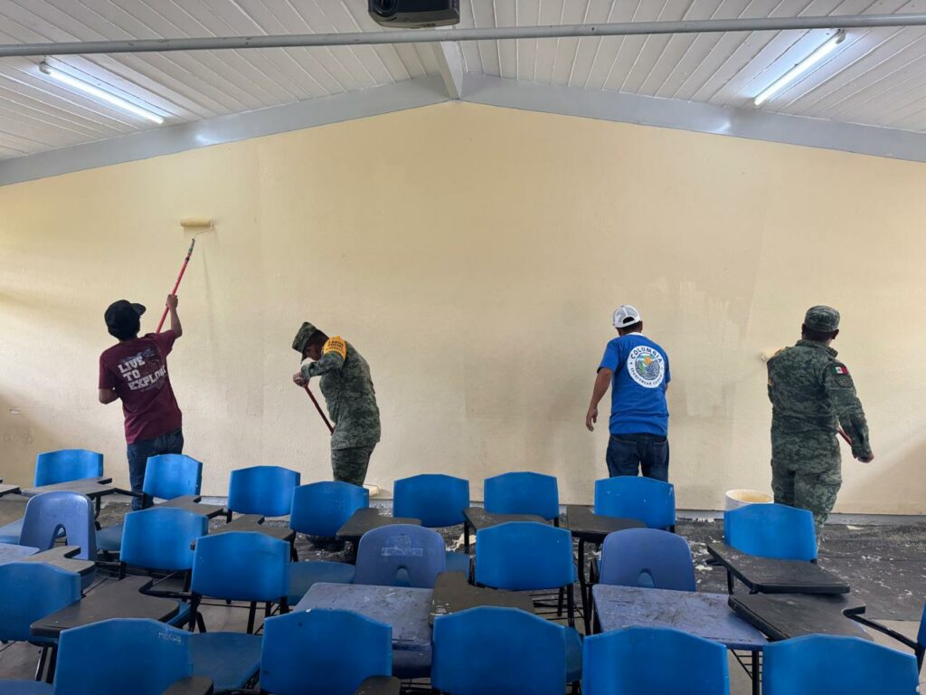 En esta actividad de acercamiento social, participaron más de 40 elementos del Ejército mexicano, proporcionando apoyos como: consultas médicas, cortes de cabello, trabajos de de mantenimiento y reparación de la Escuela Secundaria Técnica #7 consistentes en la aplicación de soldadura, pintado de nueve salones, baños y limpieza y poda de áreas verdes.