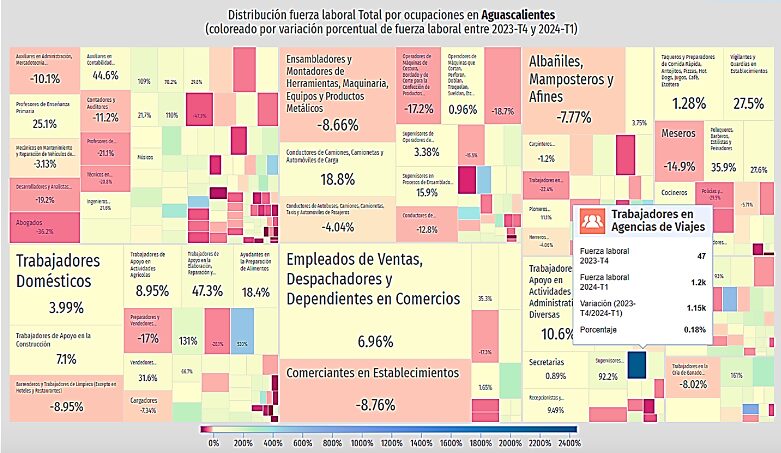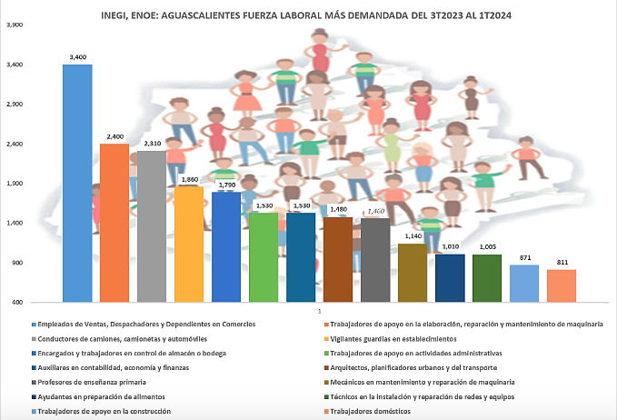 Para una demanda total de 25 mil 897 trabajadores adicionales que representaron un 25.72% entre las principales ocupaciones más solicitadas en Aguascalientes, del último trimestre del 2023 al primer trimestre del 2024 de acuerdo con la Encuesta Nacional de Ocupación y Empleo (ENOE). Evidentemente en contraste con los miles de empleos que se perdieron en el mismo lapso entre las profesiones y empleos que han tenido detrimento en los mercados laborales locales.