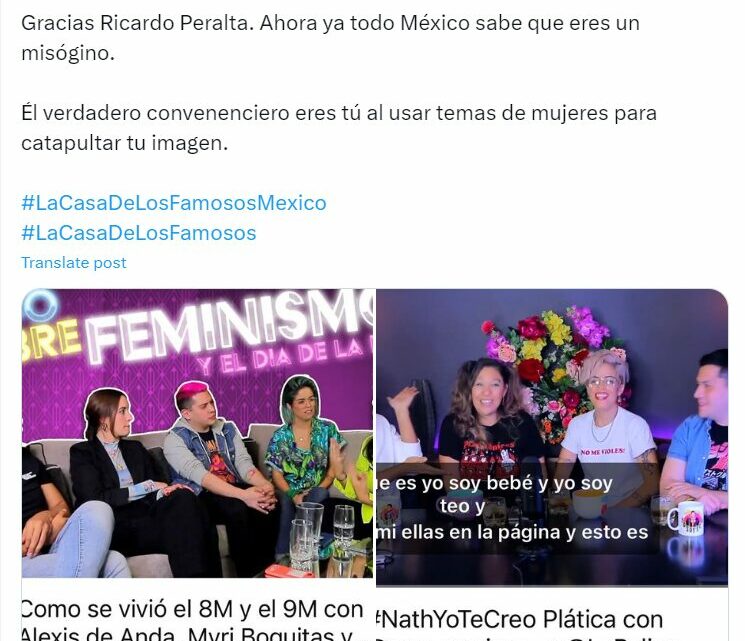 Por si fuera poco, en una conversación con Adrían Marcelo, Ricardo afirmó que el feminismo no existe y que las mujeres se apoyan entre ellas por pura conveniencia. Asegurando que mientras entre las mujeres no existe ninguna red de apoyo real, “los hombres tienen códigos de conducta, se entienden y valoran entre ellos de manera genuina”.