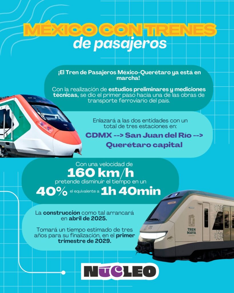 Se prevé la construcción de tres estaciones principales: Buenavista, en la Ciudad de México, San Juan del Río, en Querétaro, y Querétaro capital, conectando a los viajeros con sistemas de transporte intermodal como el Metro y Metrobús en CDMX, y autobuses en Querétaro. Esto permitirá que los usuarios no solo ahorren tiempo, sino también disfruten de un viaje más cómodo y directo.