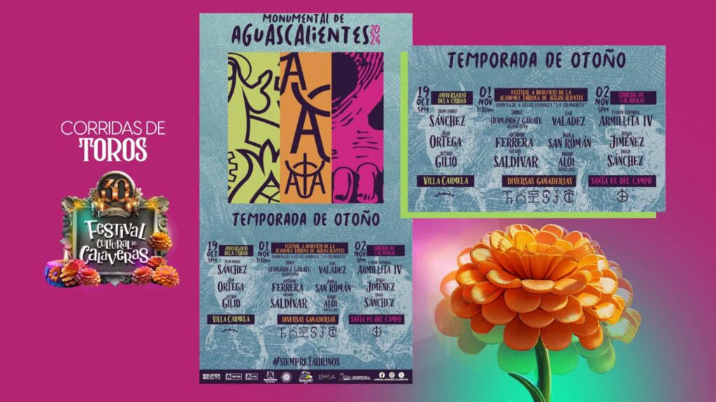 - 1 de noviembre – 7:30 p.m.: Festival benéfico para la Academia Taurina de Aguascalientes, en homenaje a Elías Esparza «La Changuita». En esta fecha participarán figuras como el rejoneador Jorge Hernández Gárate, y los toreros Antonio Ferrera, Arturo Saldívar, Leo Valadez, entre otros. Los toros provendrán de diversas ganaderías.