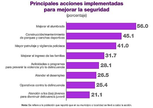 La Encuesta Nacional de Victimización y Percepción sobre Seguridad Pública, genera estimaciones estadísticas sobre la victimización que afecta de manera directa a las personas y a los hogares en los delitos como: robo total de vehículo, robo parcial de vehículo, robo en casa habitación y robo o asalto en calle o transporte público. También se consideran el robo (como carterismo, allanamientos con robo en patio o cochera y abigeato), fraude, extorsión, amenazas verbales, lesiones, secuestros y delitos sexuales. Más de una de cada cuatro personas fueron víctimas de algún delito.