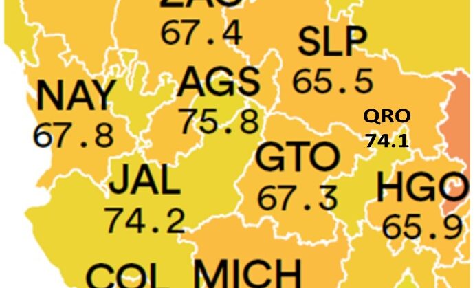 En Progreso Social, destacan en el país la Ciudad de México y Aguascalientes; en la región, Jalisco y Querétaro; con diez puntos menos Guanajuato, Zacatecas y San Luis Potosí.