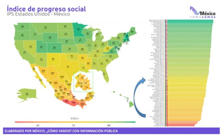 México, ¿cómo vamos?, en colaboración con el Social Progress Imperative e INCAE, presentó el Mapa de Prosperidad Compartida; una representación del bienestar interconectado de los estados en Estados Unidos y México. Basándose en los datos exhaustivos del Índice de Progreso Social más reciente, este mapa ofrece una perspectiva subnacional sobre la calidad de vida más allá de indicadores económicos.