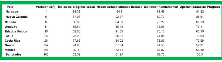 El índice toma valores de 0 a 100, donde 100 representa el nivel más alto de progreso social posible, mientras que 0 representa el nivel más bajo posible.