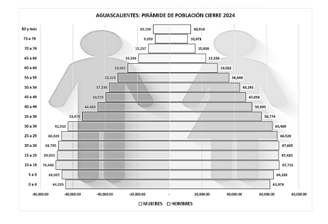 El Censo de Población y Vivienda 2020 reconoció para Aguascalientes una población de un millón 425 mil 607 habitantes. Considerando las proyecciones de población del CONAPO al 31 de diciembre del 2024 contamos ya con un millón 539 mil 652 habitantes; 784 mil 966 mujeres y 754 mil 686 hombres.
