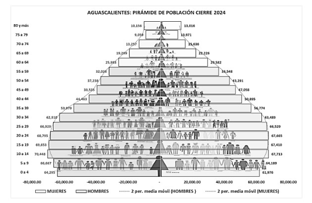 El crecimiento natural para el 2024 ascenderá a 19 mil habitantes producto de 26 mil nacimientos y siete mil defunciones; el crecimiento social será mínimo: por 589 efectivos, producto del saldo neto migratorio entre emigrantes e inmigrantes (ganamos frente a otros estados, pero perdemos contra el mundo) seguiremos buscando el sueño americano para más de siete mil aguascalentenses.