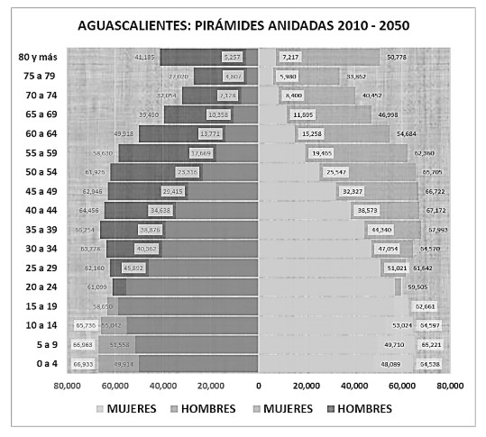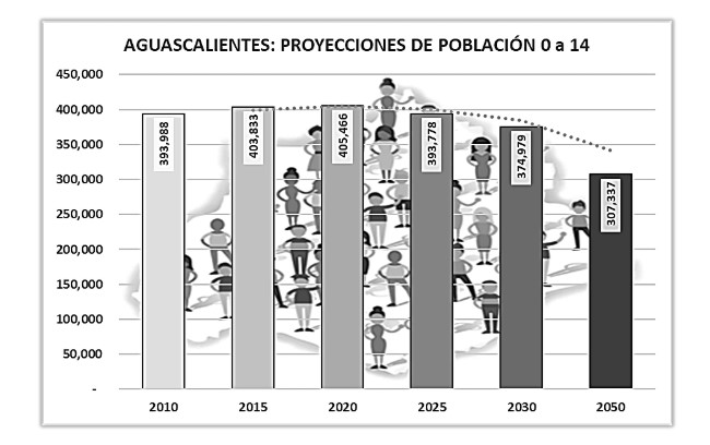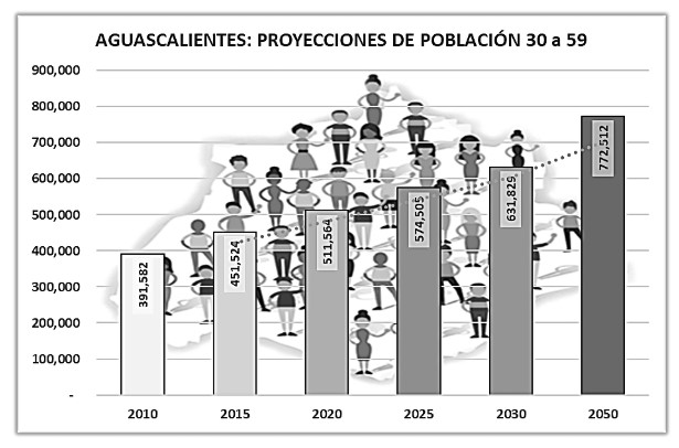 En el 2010 teníamos en Aguascalientes 394 mil infantes de 0 a 14 años por 90 mil adultos mayores de 60 años; en el 2050 los números serán radicalmente diferente, de niños contará el estado hidrocálido con sólo 307 mil por 416 mil mayores de 60 años.