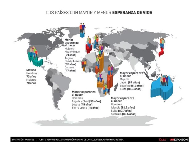 La esperanza de vida puede tener diferencias importantes entre países y aun entre estados en el caso de medirla en forma subnacional. Entre Nuevo León y Chiapas median cinco años de diferencia en expectativa de vida; o dieciocho lugares entre Aguascalientes y Zacatecas.