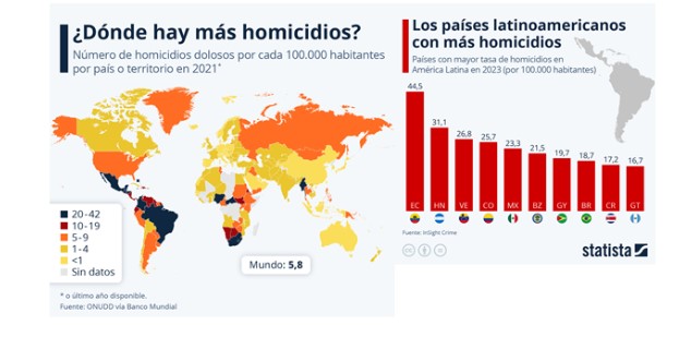 Los homicidios son delitos de alto impacto cuya tasa de homicidios dolosos por cada 100 mil habitantes representa en gran medida la violencia que se vive al interior de los países. Los rangos van desde menos uno por cada 100 mil como en el caso de Australia o los países nórdicos, hasta países africanos o latinoamericanos, como México, donde se presentan de 20 y hasta 44 homicidios dolosos por cada 100 mil habitantes.