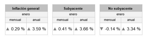 A tasa anual, los índices subyacente y no subyacente registraron un incremento de 3.66 y de 3.34 %, respectivamente. En enero del año anterior, la variación anual fue de 4.76 y de 5.24 %, en ese orden (ver gráfica 3).