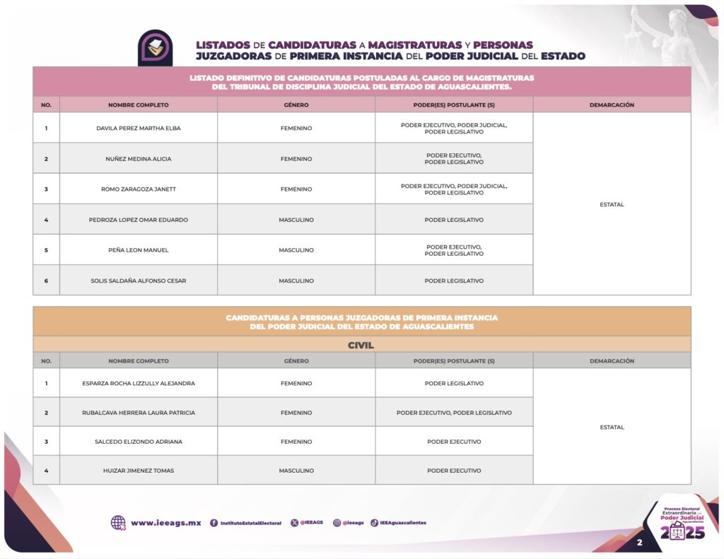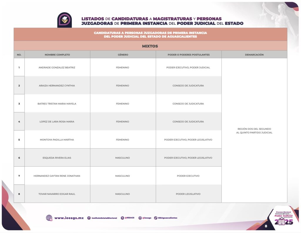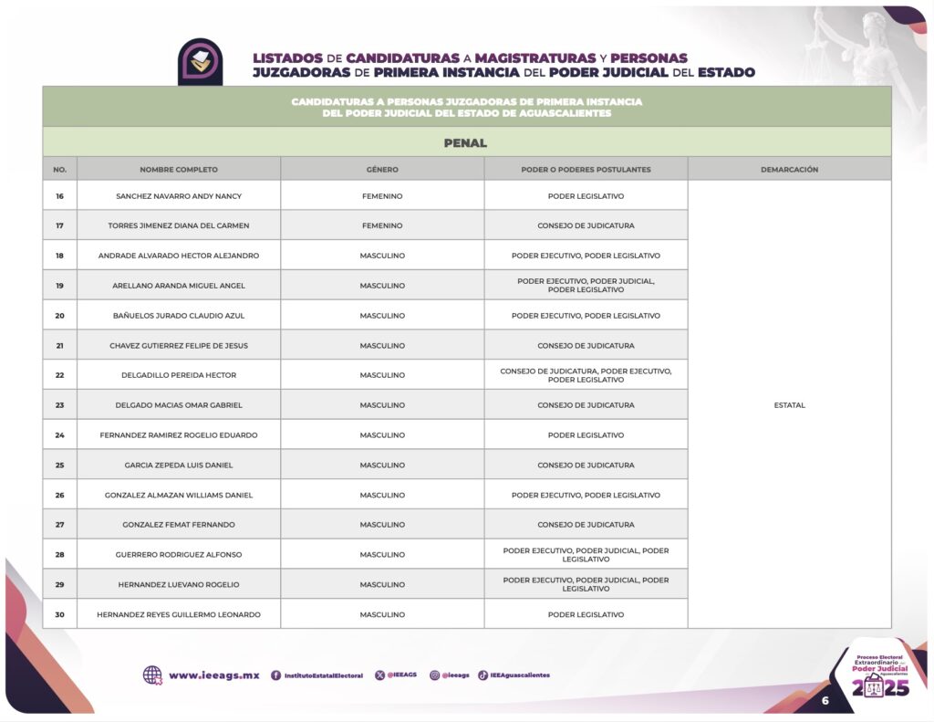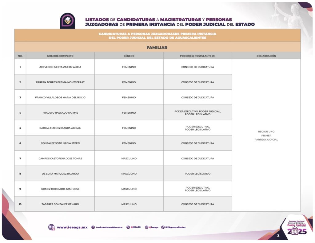 Conoce el listado de candidaturas a Magistraturas y Personas Juzgadoras de Primera Instancia del Poder Judicial del Estado de Aguascalientes, que se aprobó en la sesión ordinaria del viernes.