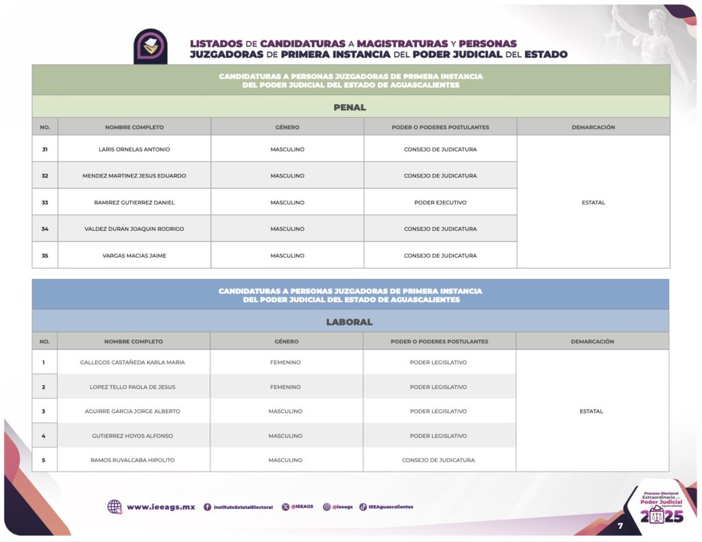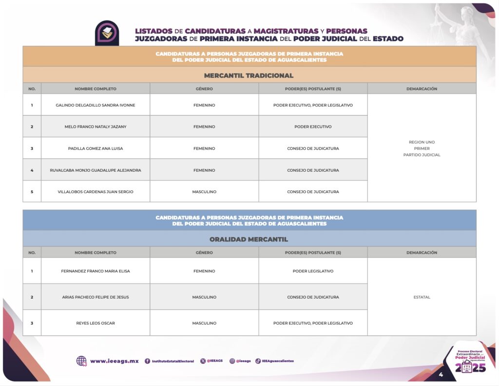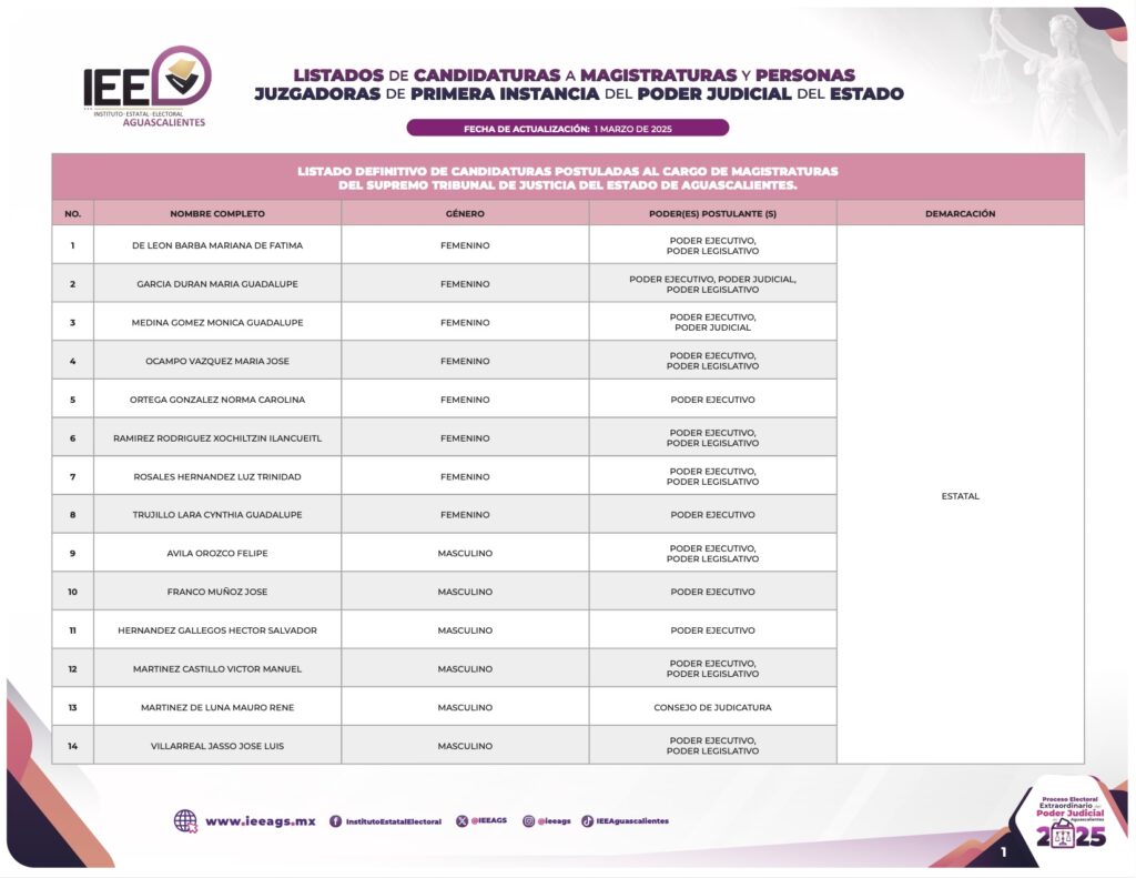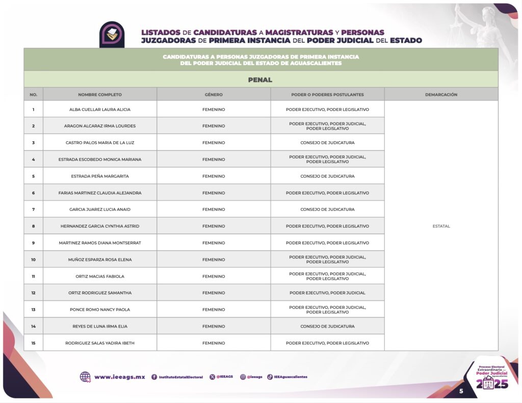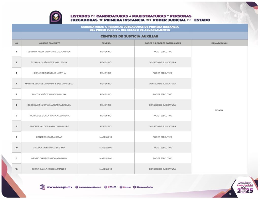 Conoce el listado de candidaturas a Magistraturas y Personas Juzgadoras de Primera Instancia del Poder Judicial del Estado de Aguascalientes, que se aprobó en la sesión ordinaria del viernes.