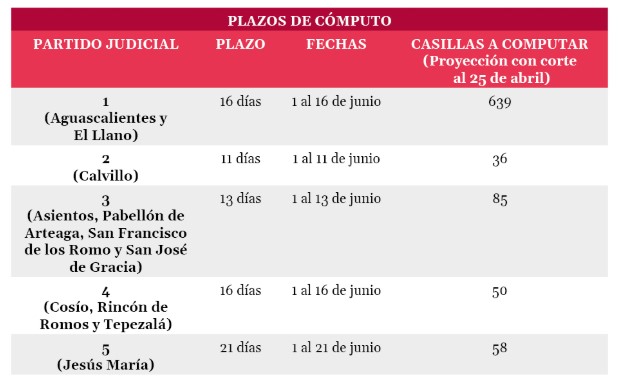 - El cómputo de resultados se llevará a cabo del 1° al 21 de junio en los cinco partidos judiciales