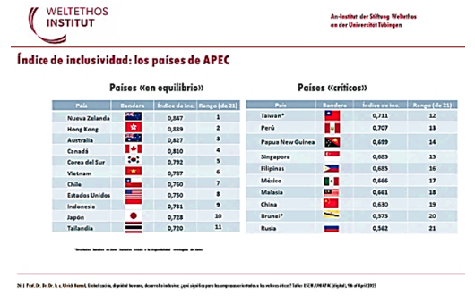 El Índice de Inclusividad los separa entre países en equilibrio (11) y países críticos (10) entre los que destaca México con 0.666 puntos.
