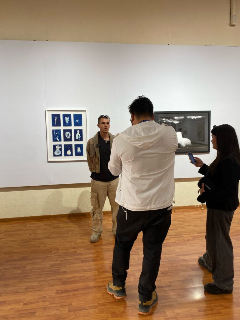Desde el Estado de México, Diego Sánchez Inestrillas también fue reconocido por una obra que entreteje pasado y presente, tecnología e identidad. Su propuesta plástica parte de un método de educación indígena utilizado para registrar la diversidad, reinterpretado a través de materiales industriales y plásticos: “La obra trata sobre cómo el flujo industrial se entrelaza con el paisaje y genera un nuevo ecosistema. Es una forma de registrar este nuevo entorno a través de una diversidad plástica”, explicó. Para Diego, participar en este encuentro es un motivo de orgullo y una forma de representar al país entre tantos talentos emergentes. Su consejo para las nuevas generaciones de artistas: “Hagan lo que puedan con lo que tienen. Exploren, investiguen y sean honestos con sus propias historias”.