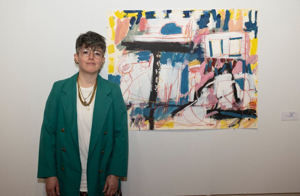 Renard Solís Herrera, artista originario de la Ciudad de México, recibió una mención honorífica por una obra que no busca ser explicada, sino sentida: “Me alejo de los títulos para dejar que la pintura hable. No quiero que se encierre por palabras”, compartió.
