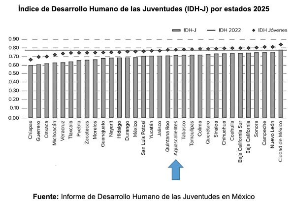 El Programa de Naciones Unidas para el Desarrollo presentó el IDH-J para México a nivel nacional y subnacional. Afirma que, a este país aún joven, se le debe garantizar un desarrollo pleno no solo por un imperativo ético, sino como una estrategia clave para su futuro. Las juventudes son hoy uno de los grupos poblacionales más diversos, dinámicos y estratégicos. Al mismo tiempo, enfrentan desigualdades estructurales que limitan su acceso a oportunidades y derechos, especialmente en contextos marcados por la pobreza y la violencia.