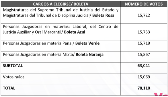 En este sentido, se contó la votación emitida en las 85 casillas instaladas en los cuatro municipios que comprende este partido judicial. Para ello, se contó con un grupo de trabajo y cinco puntos de escrutinio y cómputo en los que participaron las personas integrantes de los Consejos, personas Capacitadoras Asistentes Electorales Locales (CAEL) y funcionariado electoral.