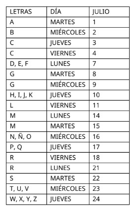 “Estamos llegando a 15.9 millones de derechohabientes de los Programas de Bienestar que van a recibir su apoyo, a partir del día de hoy, con el siguiente calendario: Iniciamos el día 1 de julio y vamos a concluir el día jueves 24. Recordar que es por letra del primer apellido para darles una atención adecuada, porque cada vez son más beneficiarios y derechohabientes de los Programas de Bienestar”, resaltó.