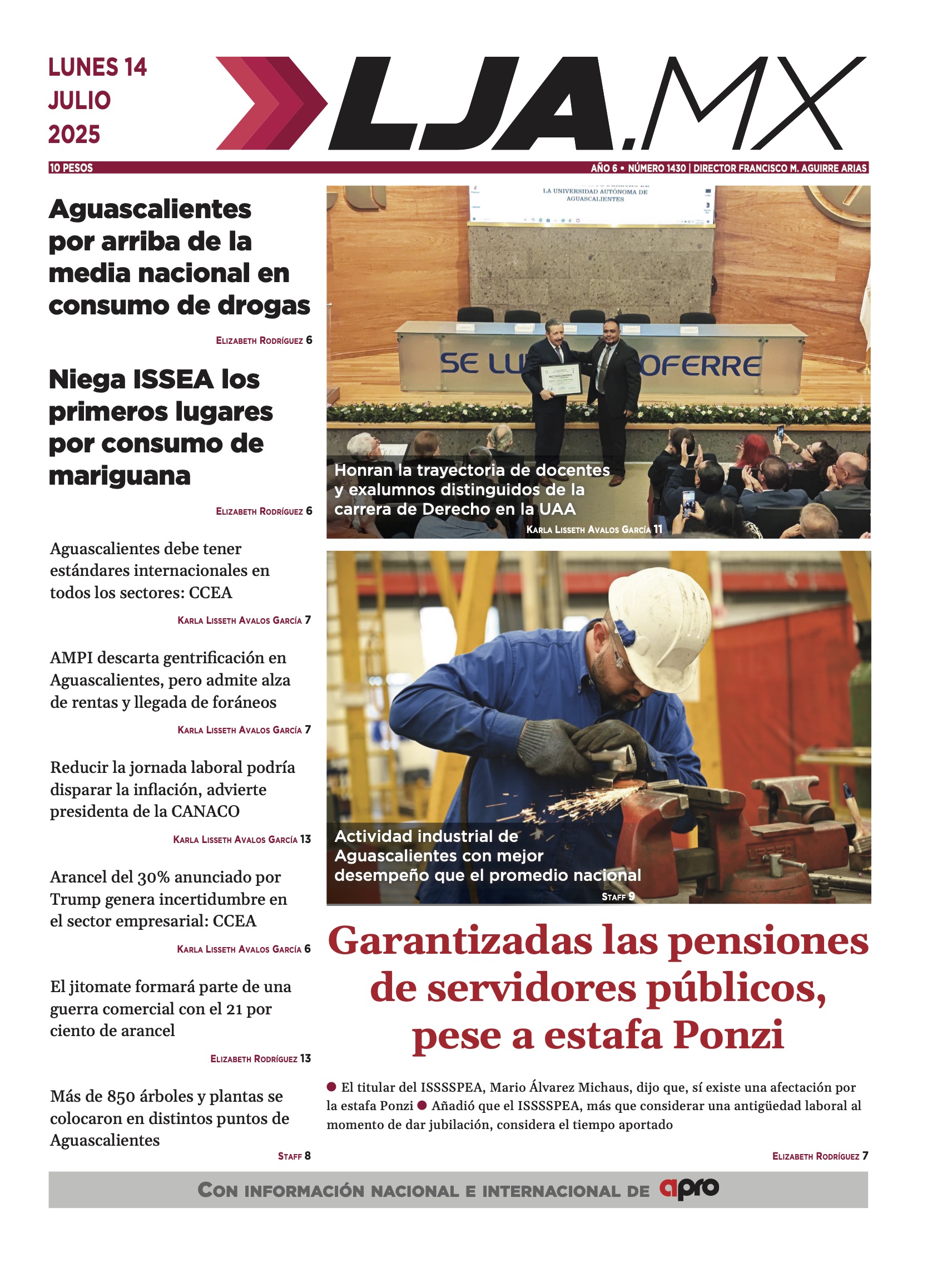 Garantizadas las pensiones de servidores públicos, pese a estafa Ponzi y más en LJA.MX, edición 14/7/2025