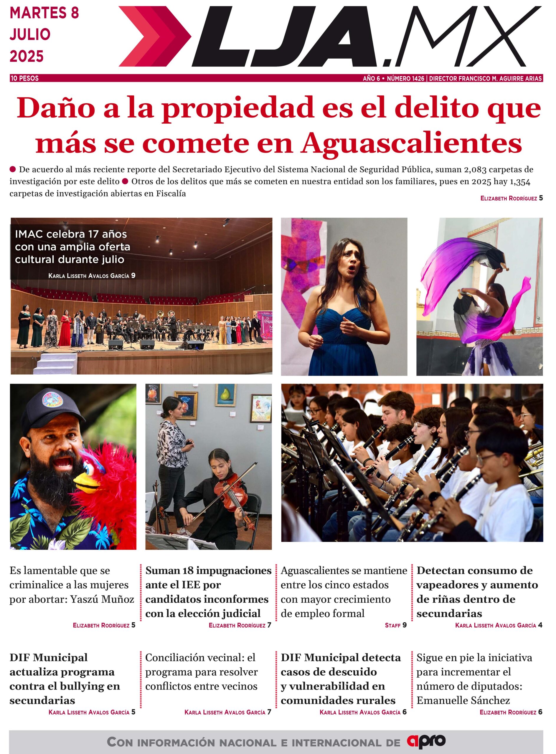 Daño a la propiedad es el delito que más se comete en Aguascalientes y más en LJA.MX, edición 8/7/2025