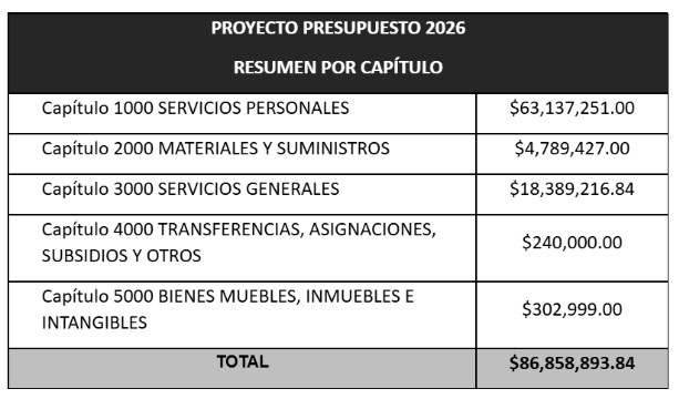 Además de ello, se avaló la bolsa presupuestal para el financiamiento público estatal anual ordinario de los partidos políticos nacionales acreditados y los partidos políticos locales registrados en el estado, para el ejercicio fiscal 2026, el cual asciende a $85,522,231.81.