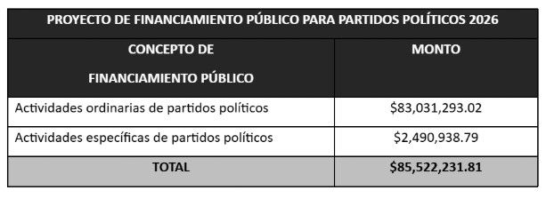 Será en el mes de enero de 2026 cuando se realice el desglose de financiamiento público para cada partido político, una vez que el proyecto presupuestal sea aprobado por el Congreso del Estado.