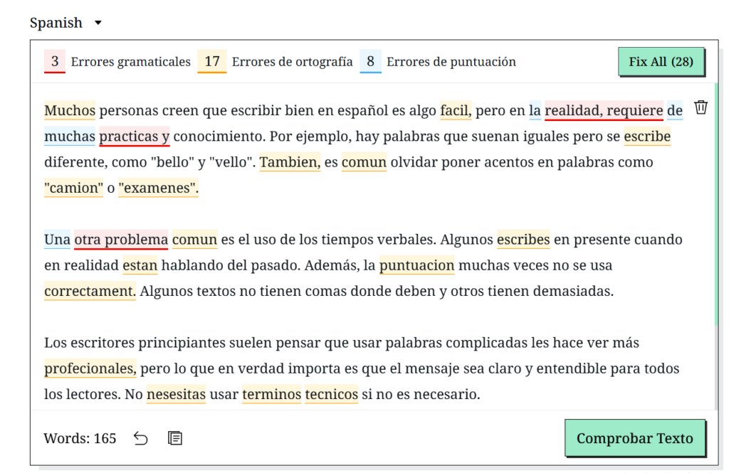 Enlace de origen: https://www.grammarcheck.ai/es/corrector-castellano