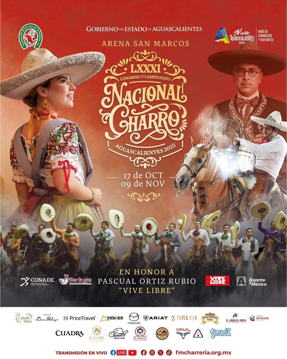 Aguascalientes recibe con orgullo a los charros y escaramuzas de todo el país que participarán en el Campeonato Nacional Charro 2025, que se llevará a cabo en la Arena San Marcos.