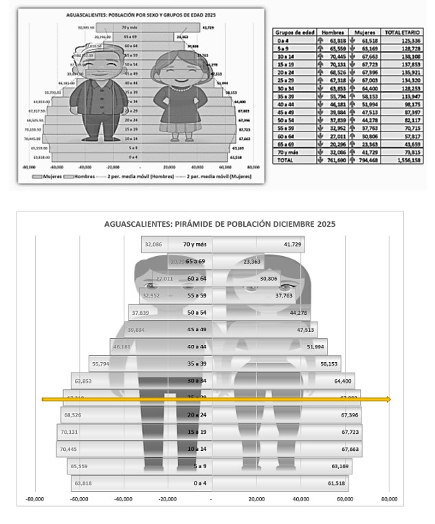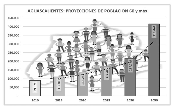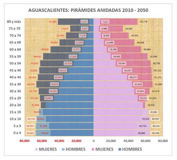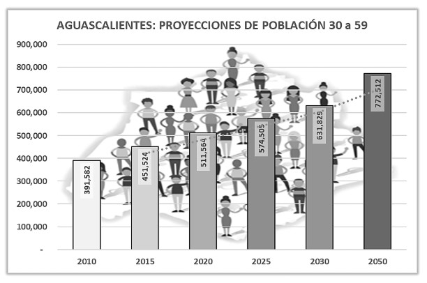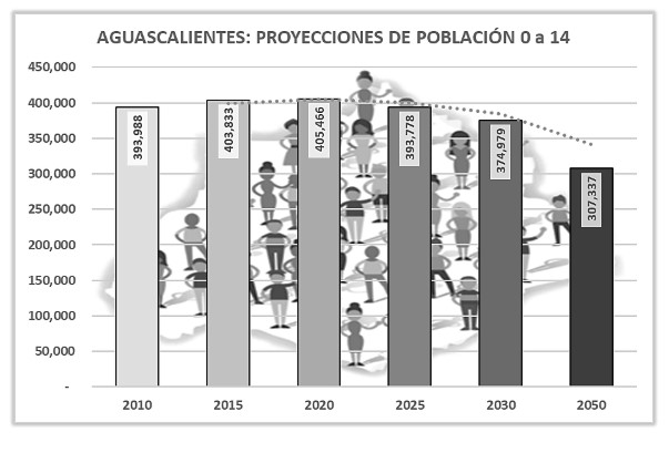En el 2010 teníamos en Aguascalientes 394 mil infantes de 0 a 14 años por 90 mil adultos mayores de 60 años; en el 2050 los números serán radicalmente diferente, de niños contará el estado hidrocálido con sólo 307 mil por 416 mil mayores de 60 años.